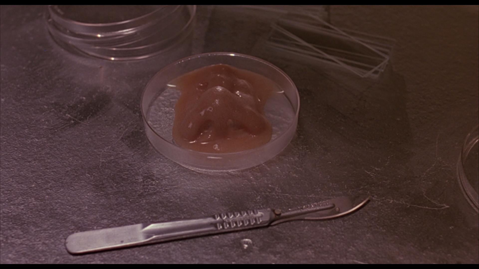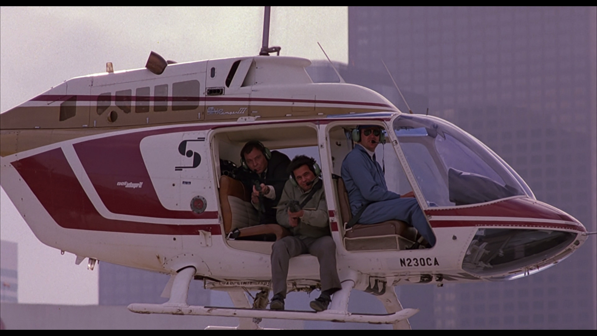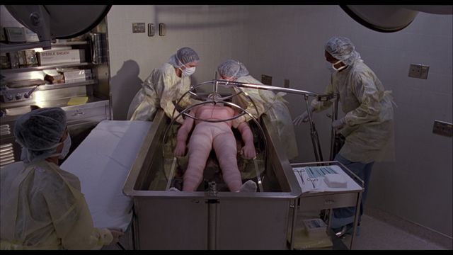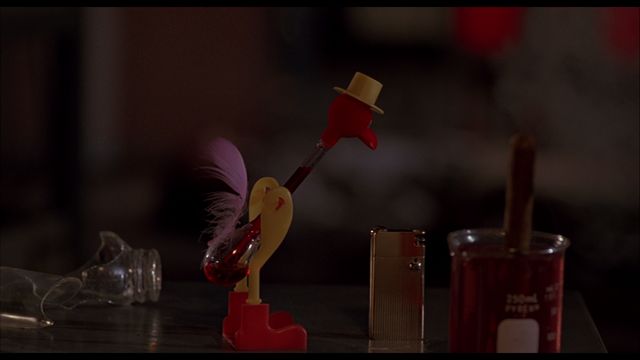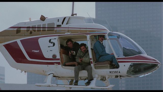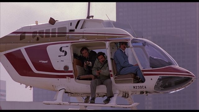 - “Dark Design” (16 minutes, 46 seconds – HD) includes interviews with Randy Ser (production designer) and Philip Dagort (art director). You’ll learn here that no computer visual effects were done on this film. The production designer reminiscences about getting his first personal computer while making this film to use to keep track of work. Things were done as practically as possible, including the famous scenes involving a helicopter.
