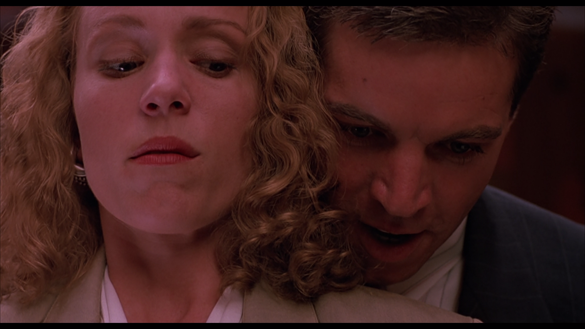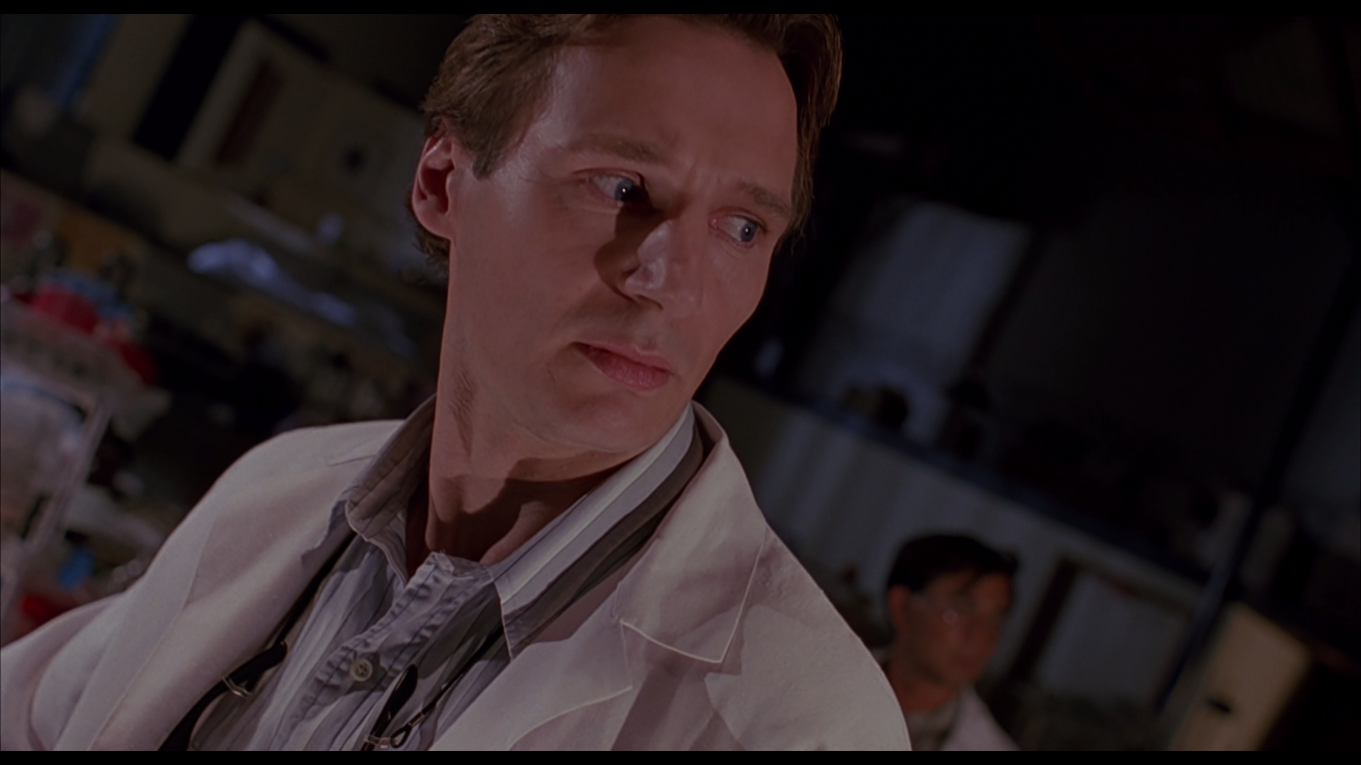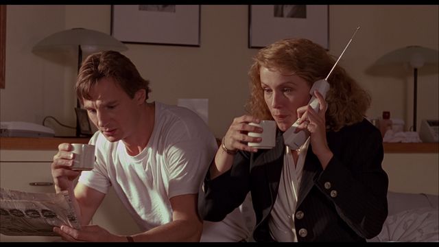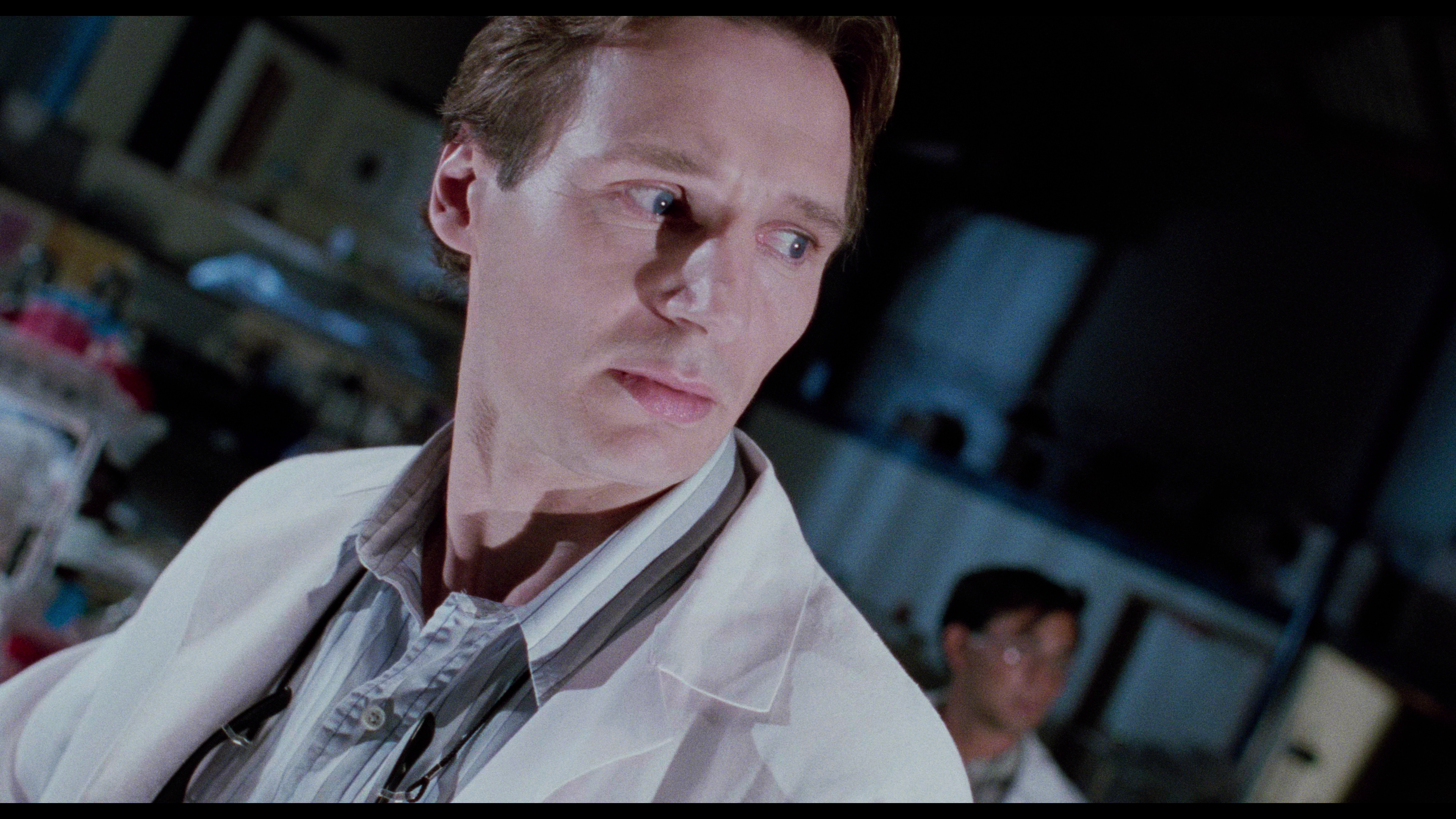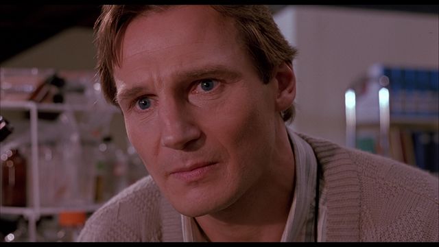 The story is that of a scientist, named “Peyton Westlake” (Liam Neeson), who is working on creating what he’s calling synthetic skin. He’s on the verge of a breakthrough at his labs, with the skin able to stay stable for only a short length of time, around 99 minutes before it fails and starts to melt. Peyton has a beautiful girlfriend named “Julie Hastings” (Frances McDormand) who he’s madly in love with, but she’s preoccupied (much like him) with her work. Julie works for a wealthy businessman named “Louis Strack Jr.” (Colin Friels) who has plans for a large building development, but what she later finds out is he’s made some bribes and has ties to a gangster. The gangster is a man by the name of “Robert G. Durant” (Larry Drake) and he’s not someone to mess with.