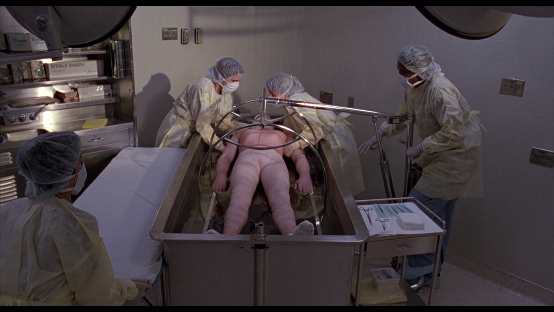 - “Dissecting Darkman” — Interview with Liam Neeson (7 minutes, 29 seconds – HD) was done by Shout! Factory in association with Red Shirt Pictures for the previous 2014 “Collector’s Edition” Blu-ray release. The interviews with others, further listed below (unless otherwise noted), are also from that 2014 release.