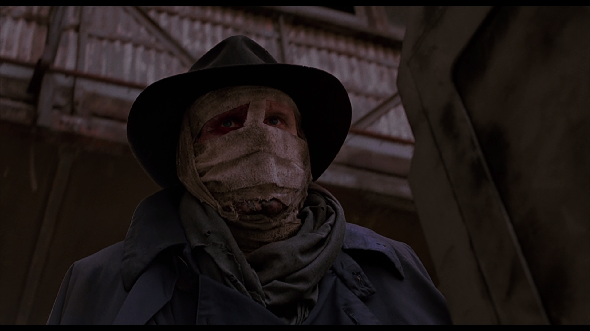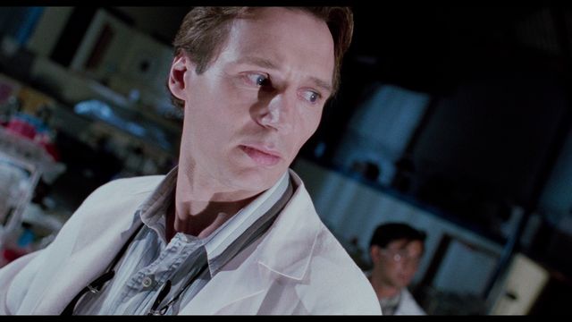 This has a solid black level. There’s a definitely at times subdued but also a somewhat vibrant color palette and the flesh tones (in comparison to the Blu-ray) look more accurate than ever throughout. The change of color timing is obvious to anyone used to this stuff. This is a pretty damn impressive video presentation in 4K and manages to fix things and finally do the film justice, with both the approval of the director (Sam Raimi) and the director of photography (Bill Pope). The folks at Scream Factory (Shout! Studios) have done a great job here and this is the best the film has ever looked on home video. That said, all and all, “Darkman” on 4K UHD Blu-ray earns a 4.5 rating for video quality.