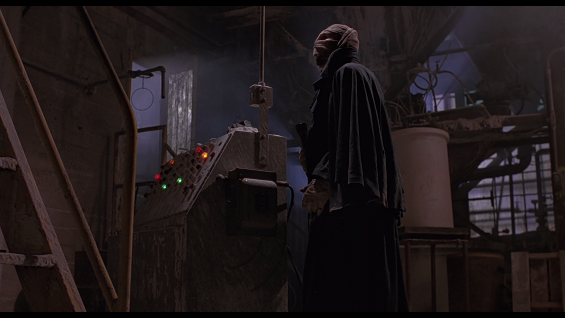 Durant’s gang includes a very interesting group of henchmen, who are willing to go to great lengths to please their boss and that sadly includes beating our protagonist Peyton up and setting fire to his lab when they come his way by a matter of coincidence. His laboratory explodes, leaving his girlfriend Julie burying what they believe to be his remains and living in sorrow. Little does she know but Peyton survived the explosion and wakes up in a hospital’s burn unit, in casts and covered in bandages much like a mummy. He manages to escape from the hospital quickly and makes his way back to the remnants of his old lab. He sees some equipment that’s not been destroyed and starts to try to salvage his work, with hopes of using them to perfect his creation of the synthetic skin to help his predicament.