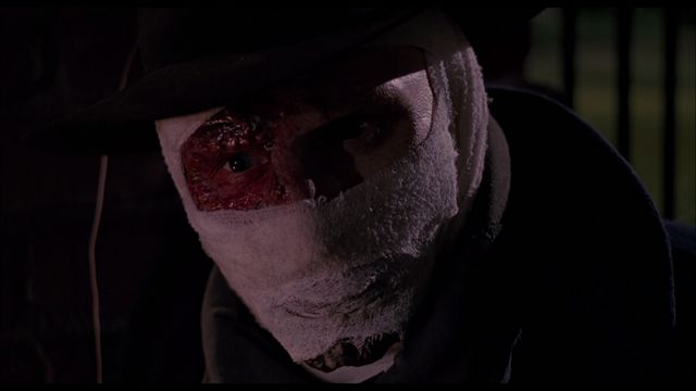 Peyton is eventually able to make some skin to disguise himself from his unsightly burned appearance, where he drapes himself in a dark trenchcoat with a cape and wears an older-styled black felt brim hat. He vows to get revenge on the gangster who did this to him and starts by taking the likeness of his henchmen, one by one, to fool them. Can he manage to keep his experimental synthetic skin stable long enough to exact revenge and reunite with his love Julie? You’ll just have to watch and find out how he truly becomes the “Darkman.” Expect one hell of a lot of action here, as this is one of Sam Raimi’s more elaborate early films with a major studio.
