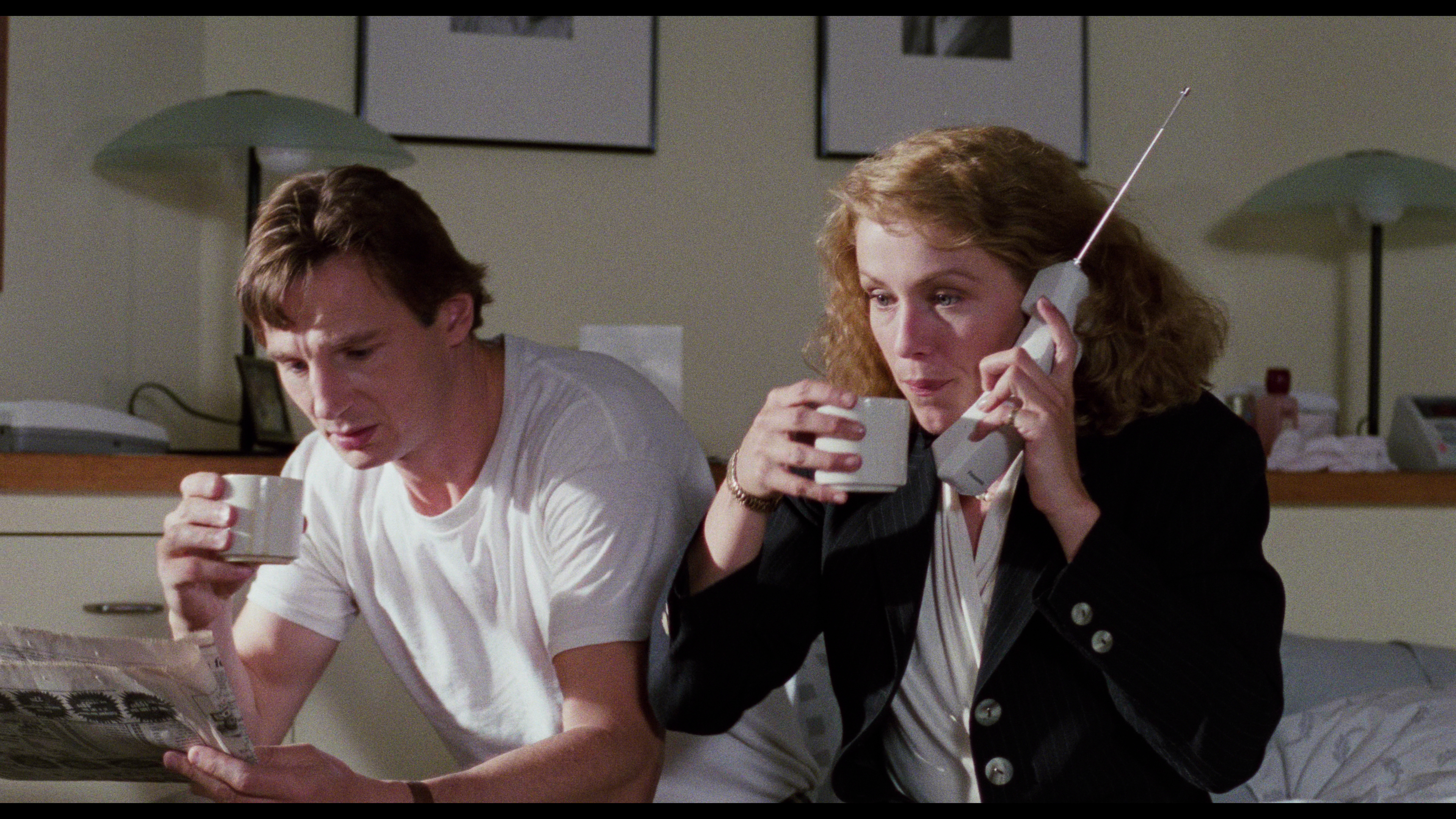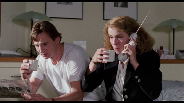 - Cast & Crew Interviews (8 minutes, 59 seconds – HD) includes interviews with Sam Raimi (director/co-writer), Liam Neeson (“Peyton Westlake” / “Darkman”), Larry Drake (“Robert G. Durant”), and Frances McDormand (“Julie Hastings”). These interviews were done by Universal and are all from 1990. This featurette also includes a bit of on-set footage, behind-the-scenes, as well as clips from the film.